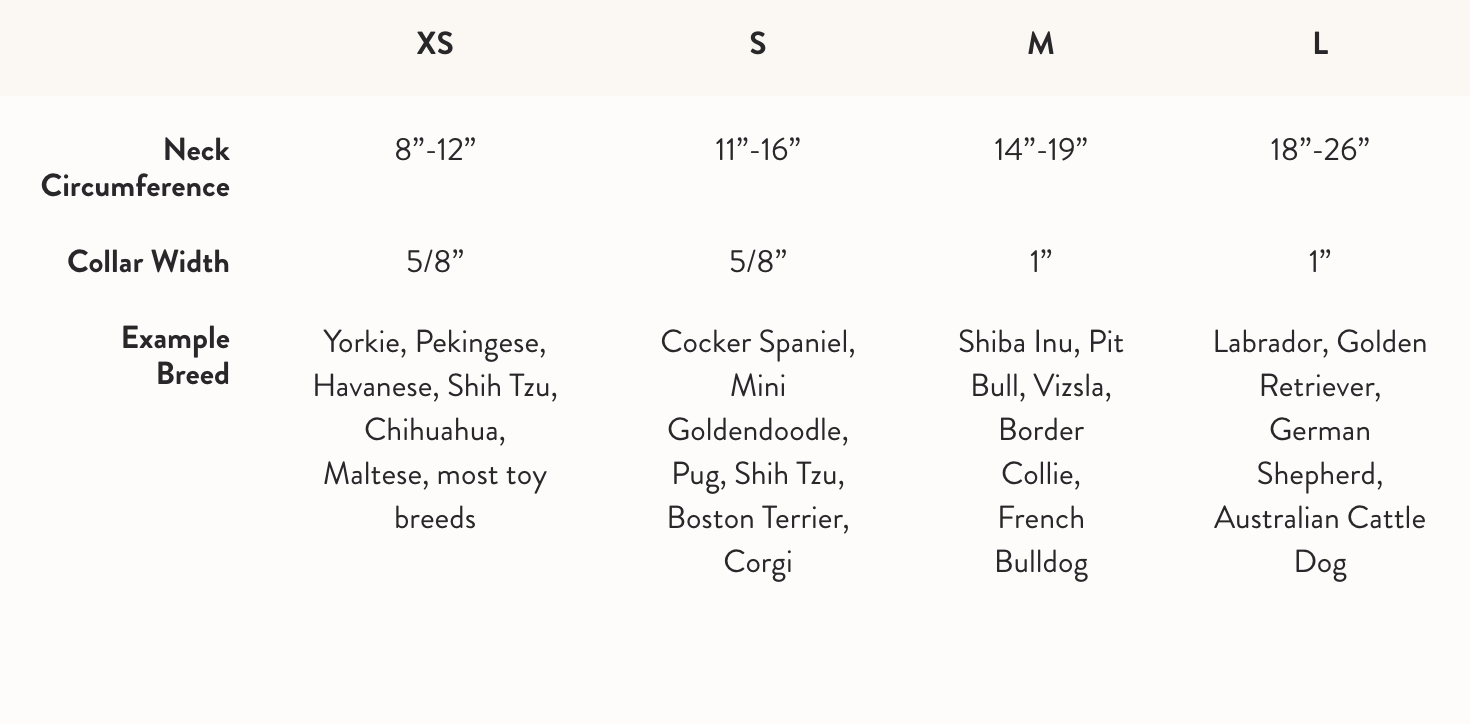 All of our collars feature durable fabric, luxe gold or rose gold hardware, and a strong nylon core.