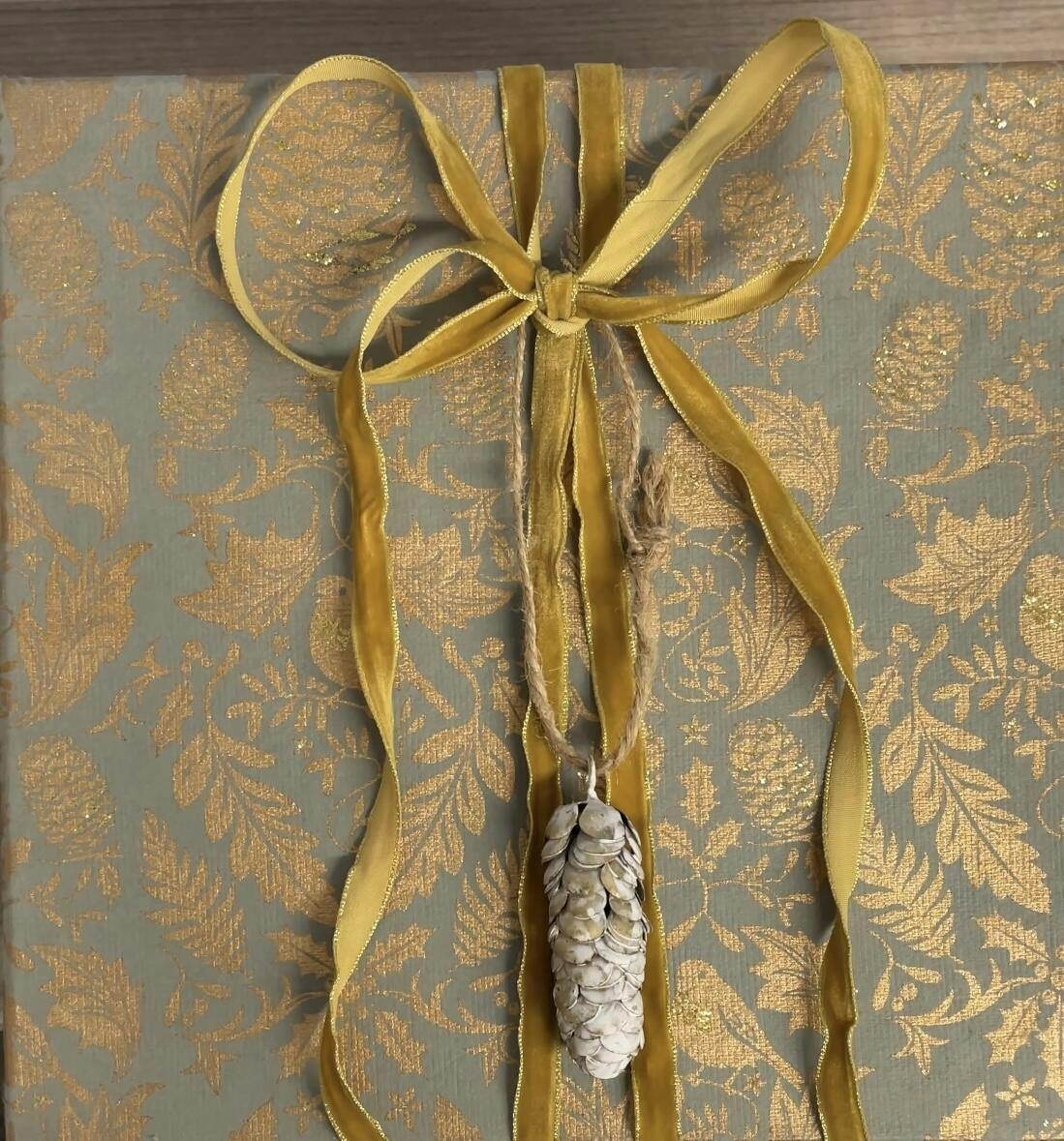 Handmade Recycled Paper Gift Boxes w/ Leaf Pattern, Gold Metallic Ink & Glitter, Green, 5 Sizes Sold Separately